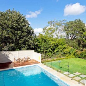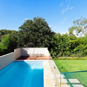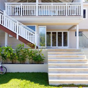 The brief from our client was to create a backyard design to work in with the architectural designed beach house renovation. A symmetrical swimming pool was designed for the lower backyard with an adjacent level lawn area. New grand stairs take you down to the backyard which are surrounded with lush tropical planting.
