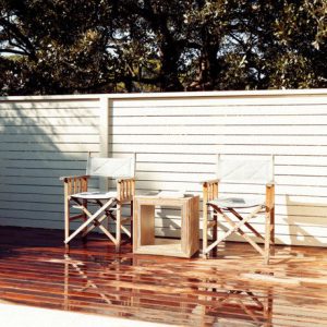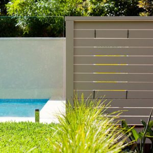 The landscaping ideas to work in with their Hampton’s style house renovation was to bring in bright green colour foliage with earthy colour tones in painted areas.