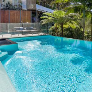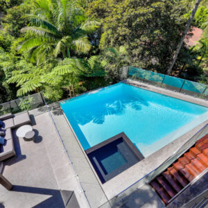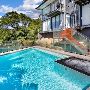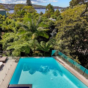 An unutilised backyard on an extreme slope with amazing views of Balmoral has been transformed into an entertaining paradise. A swimming pool design with spa and adjacent cabana has made given this amazing architectural designed home a new entertaining area.