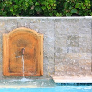 This stunning swimming pool takes the design ideas of a rustic Tuscan water feature with a twist, creating a stylish classic modern showpiece.