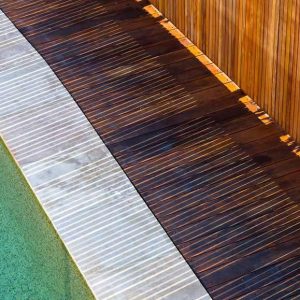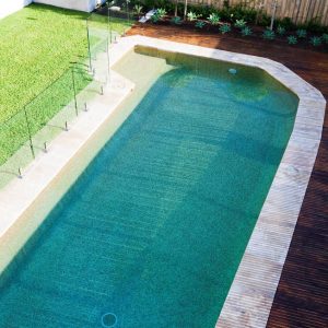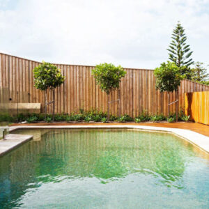 Out dated brick pavers were replaced with large travertine pavers and hardwood decking to increase the size of the swimming pool walkways. New vertical hardwood timber fence / screening were installed to add extra privacy to the pool area. Glass fencing was added to the opposite side which has opened up the backyard.