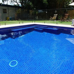 The pool design created for this backyard was to remove an existing fibreglass pool that took up most of the backyard and replace it with a small tiled plunge pool. You could say we created a new swimming pool within an existing pool. Minimal excavation was required and the extra fill that was dug up to increase the depth of the new swimming pool was buried in the new lawn area. A 10m x 4m outdated pool was replaced with a beautiful 4.5m square plunge pool with a large lawn area to complete the backyard.