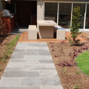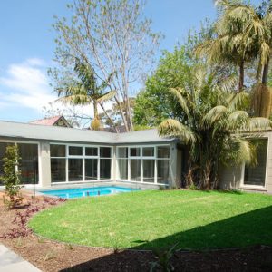 The clients wanted their backyard renovation to include a smaller plunge pool and for a connection to be created linking the house with the existing pool-house. Having small children, the clients also wanted a lawn area for the children to play on.