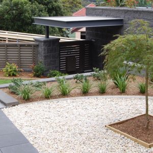 Space Landscape Designs used strong, geometrical shapes to compliment this stunning new architecturally designed home, with a minimalist brief from the owner.